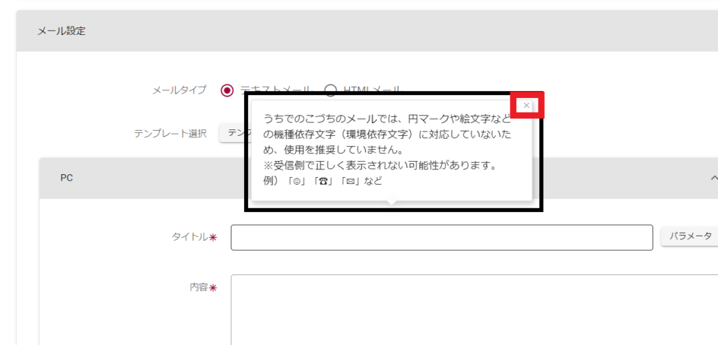 案内を閉じたい場合は、吹き出し右上の「×」をクリックしてください。