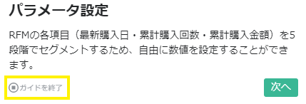 ガイドを途中で終了する場合は、「停止ボタン」を押下してください。