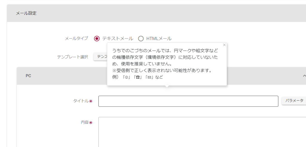 各項目の説明をツールチップとして表示しております。