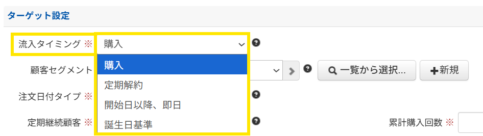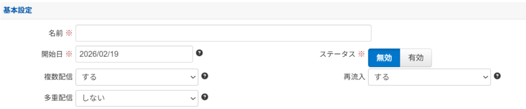 「開始日」以降にアクションがあった顧客が流入し、配信対象となります。