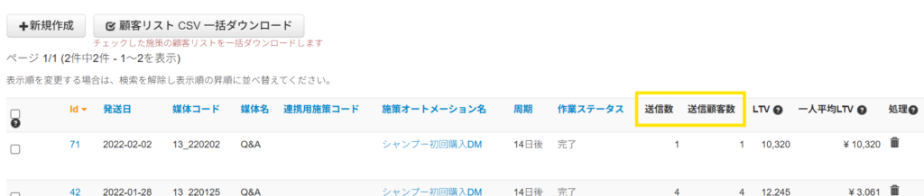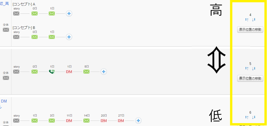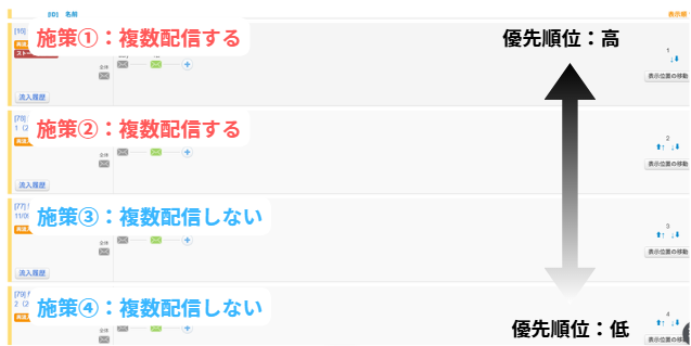 施策オートメーション一覧の右に表示される数字は、ストーリーの優先順位です。