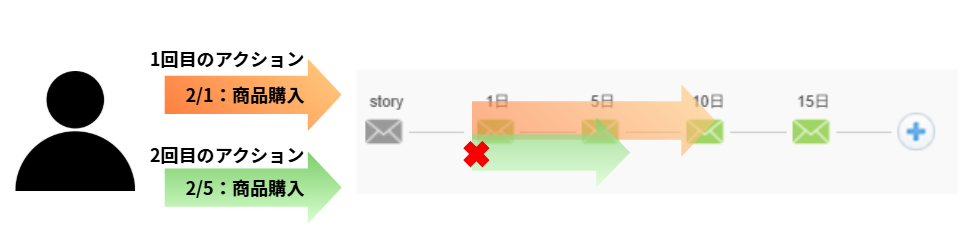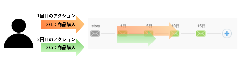 ※顧客1名が「流入」できるストーリー数は「流入条件」の設定によって変わります。