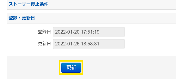 施策オートメーション画面にて「更新」ボタンを押下した場合に、ストーリーから流出します。