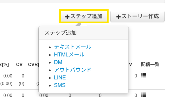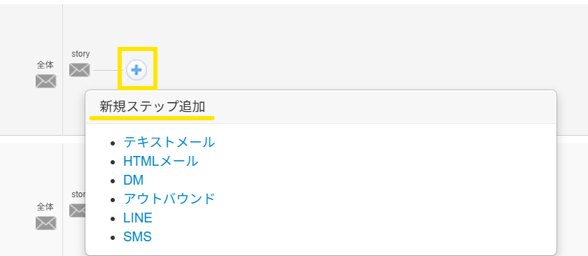 「ストーリー」に設置できる個々の施策を「ステップ」と呼びます。