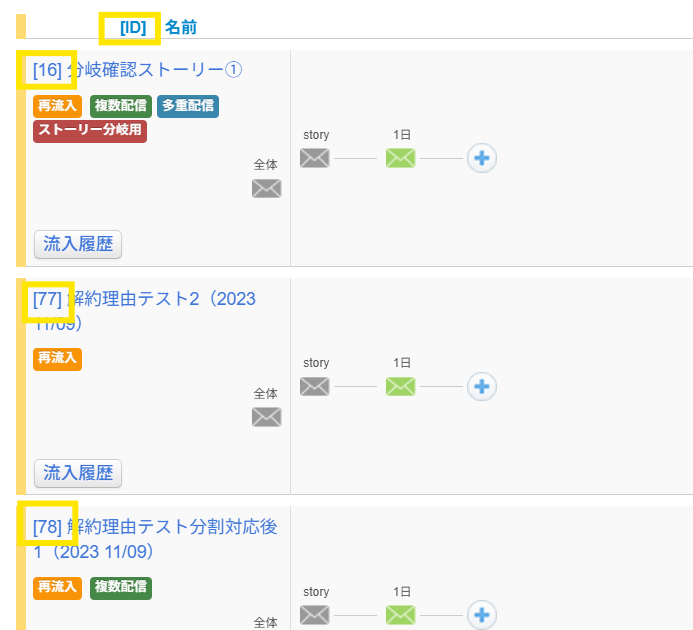 顧客が「ストーリー」配信の対象リストに入ることを「流入」と呼びます。