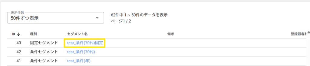 固定セグメントで保存しましたが、作成時と、その後呼び出した時の出力件数が異なっていました。