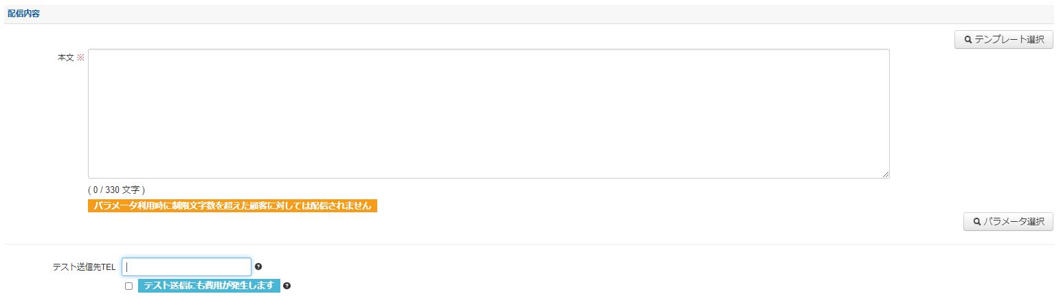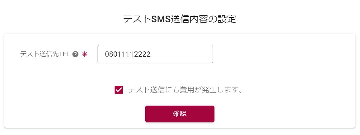 テスト送信したい携帯電話番号を入力し、「テスト送信にも費用が発生します」に