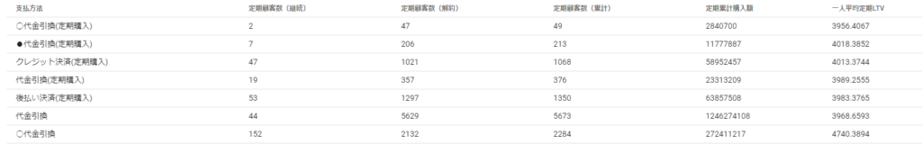 支払方法ごとに定期LTVの違いがあるかを発見し、