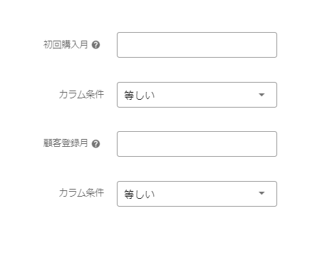 検索条件として、初回購入月、顧客登録月を指定できます。