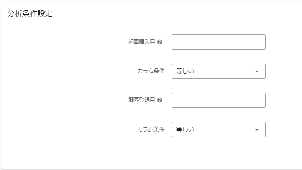 検索条件として、初回購入月、顧客登録月を指定できます。