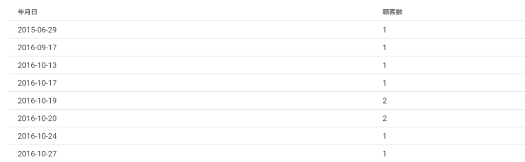 購入日も表示されるため、購入日軸と、媒体軸で顧客数を抽出することができます。