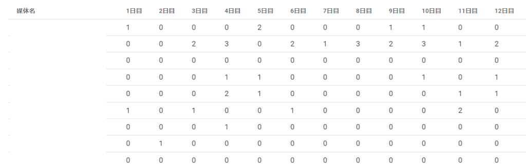 定期媒体別・日数別でカウントします。