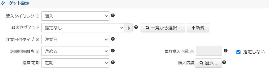 購入 (商品を購入した顧客が流入対象となります)