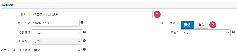 作成途中の場合は「無効」を選択、ストーリーを開始する時に「有効」に変更します。