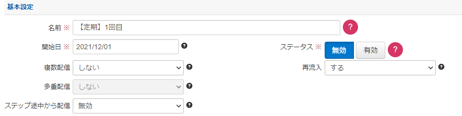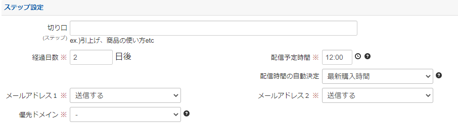 12:00 (ステップを配信する時間を8:00-22:00の範囲で指定します。)