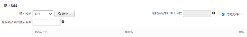 特定の商品もしくはカテゴリがあれば、以下項目で選択してください。