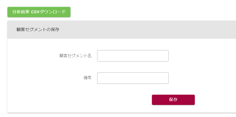 分析結果をCSVや顧客セグメントとして保存することもできるため、