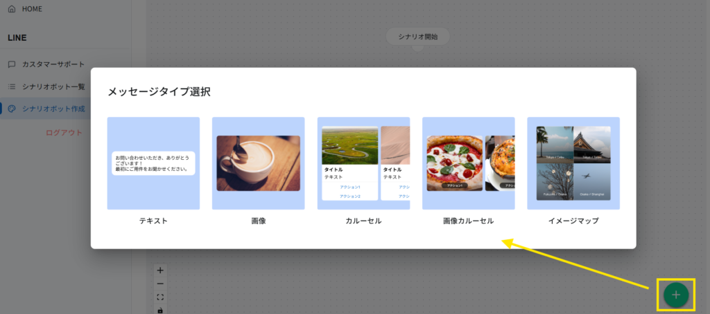 「+」ボタンを押下し、追加するメッセージタイプを選択してください。