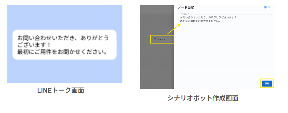 「お問い合わせ」ボタンを押すとシナリオが起動し、