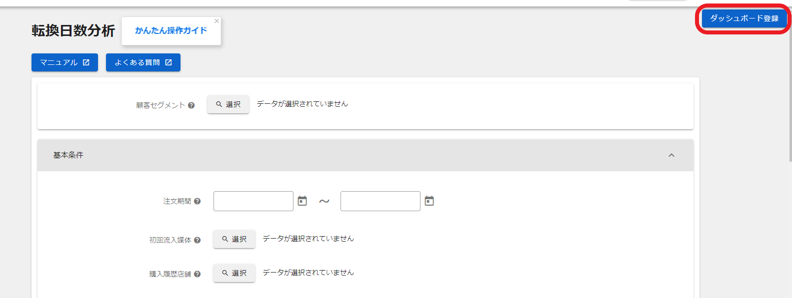 画面右上に表示される「ダッシュボード登録」を押下します。