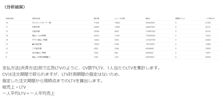 決済方法ごとにLTVの違いがあるのかを発見し、よりLTVが高まる決済方法を促進させることが可能になります。
