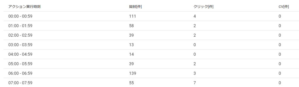 ⇒ 07:00 – 07:59 開封 2件 と出力