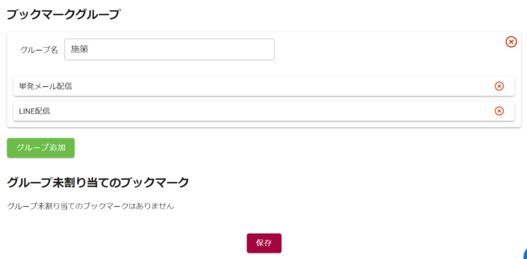 ※ブックマークに登録した各分析・施策機能の中から、ブックマークグループを作成することが出来ます。