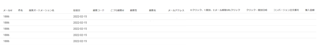 メール配信した顧客ごとに、その顧客がクリック、開封などのアクションをした日時を出力します。