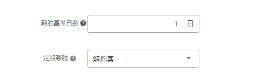 定期解約顧客のみを「離脱」とみなす場合は、「離脱日数:1」「解約客」と指定してください。