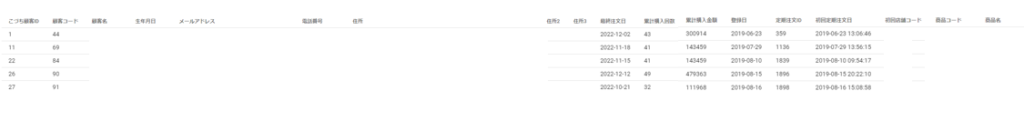 分析日時点での、定期商品を継続中の顧客リストを出力することができます。