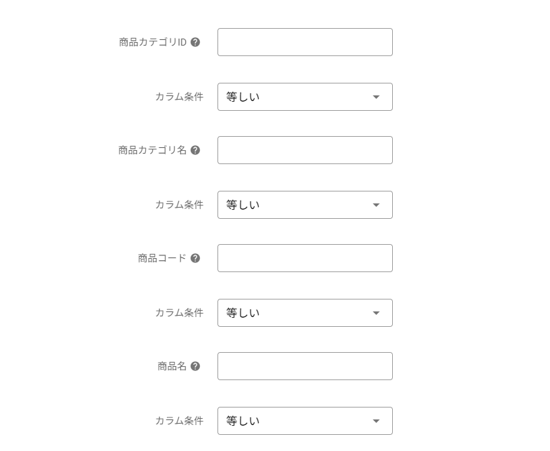 ※商品コードをカンマ区切りし、カラム条件を「複数」としてください。