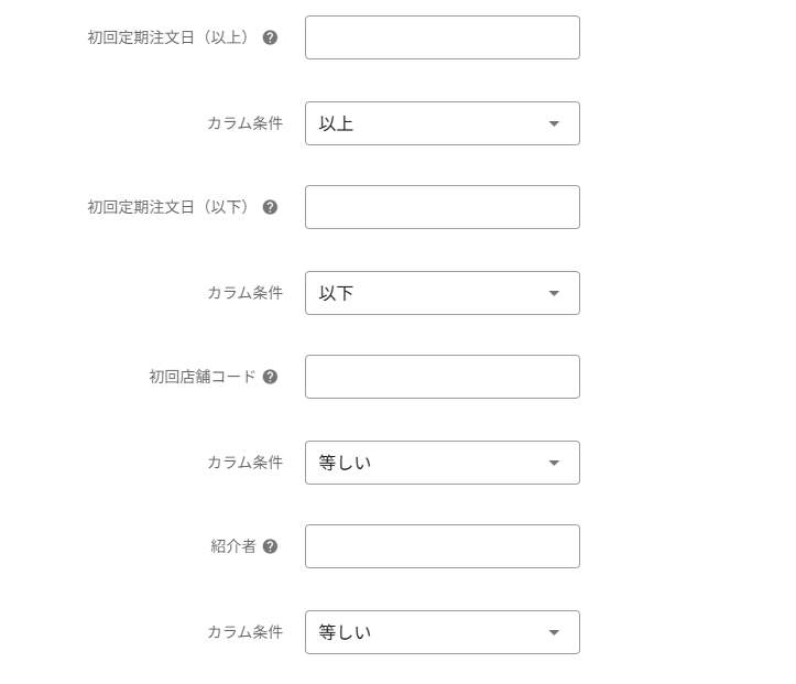 商品や初回定期注文日などの条件を設定することで、より細かく定期継続顧客を絞り込むことが可能です。
