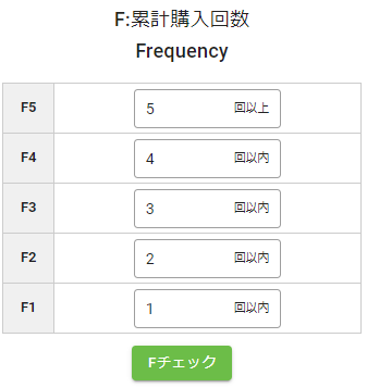 「Fチェック」を押下した後に、平均累計購入回数と最大累計購入回数が表示されます。