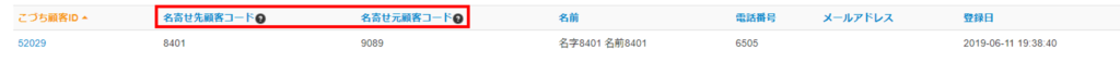 名寄せされた結果、うちでのこづちに反映される顧客コード