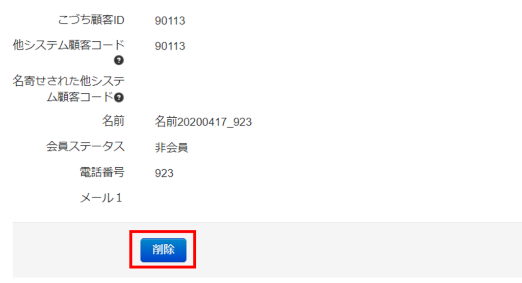 うちでのこづちからも顧客情報を削除したい場合は、削除の処理を実行してください。