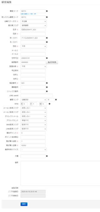 ヒットした結果の名前を押下することで、顧客の詳細情報を開くことができます。