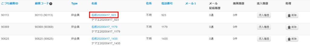 ※削除した顧客情報がカートシステム側に残っていた場合、連携更新時に再生成される可能性がございます