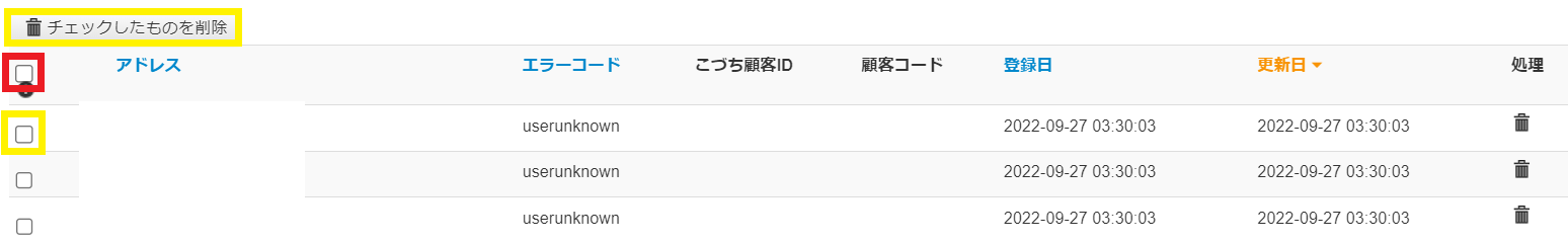 それ以外のエラーコードを理由として登録されたアドレスの削除は、