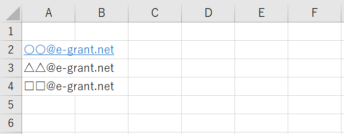 ②CSVの一列目の二行目以降にメールアドレスを羅列 (下図参照)