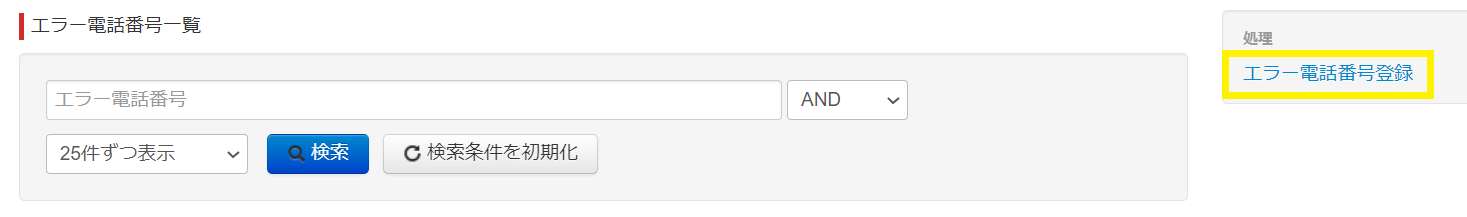 ・「エラー電話番号登録」を押下し、エラー電話番号登録画面に移動