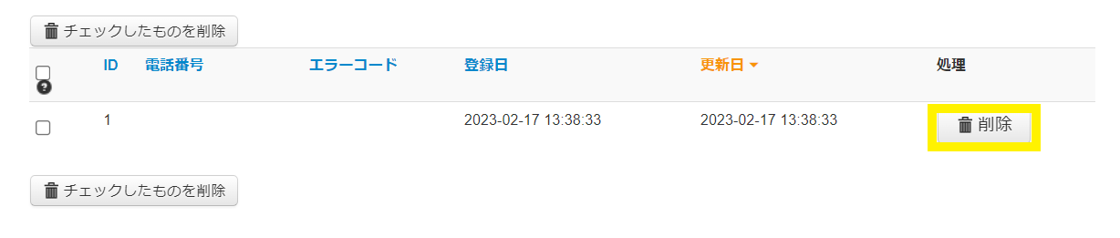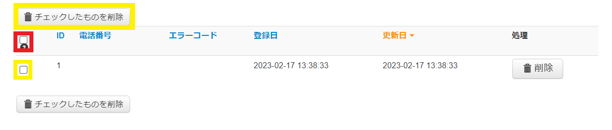 ・削除したい該当の電話番号のチェックボックスにチェックを入れる